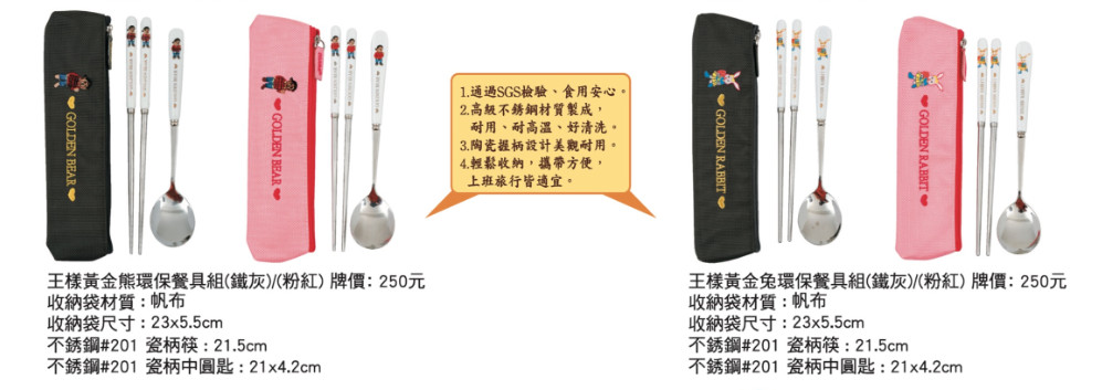 西鹿實業股份有限公司位於台灣-主要製造環保餐具工廠王樣黃金兔環保餐具組(鐵灰色)